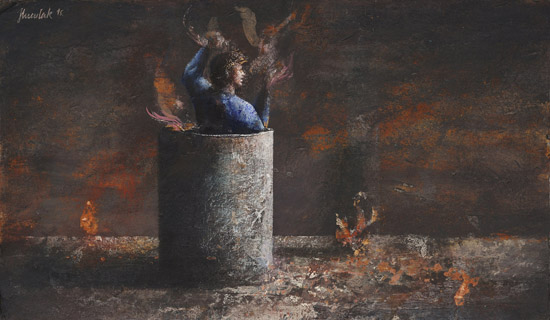The cycle introduced at The Poviat Museum in Nysa has been inspired by history of haunting the alleged witches in this area. In a wide sense the works refer to various relics of magic and alchemy, magical perceiving of the world, still present in varied forms of our mental and social life, and at the same time close to painterly practice.
