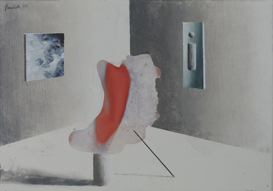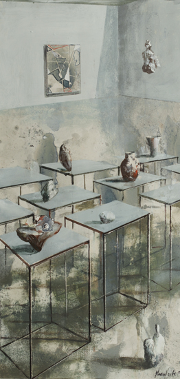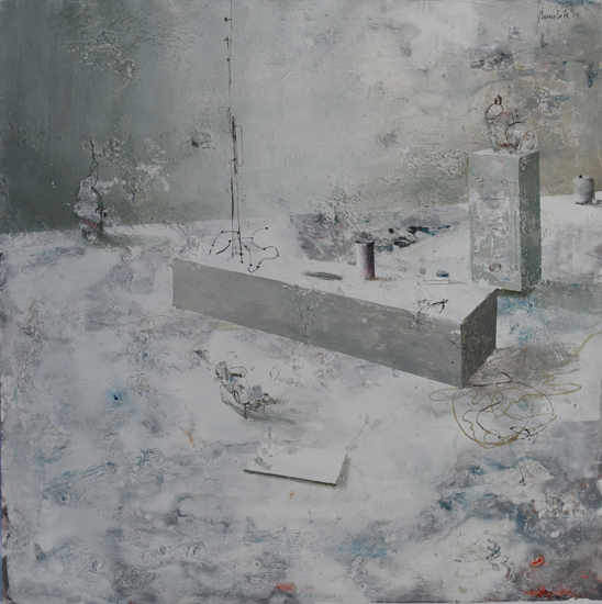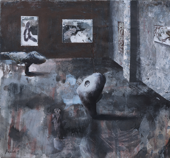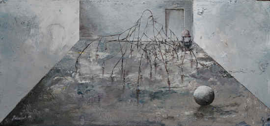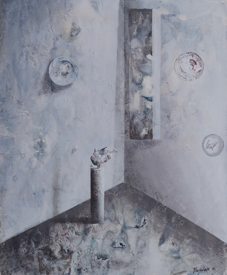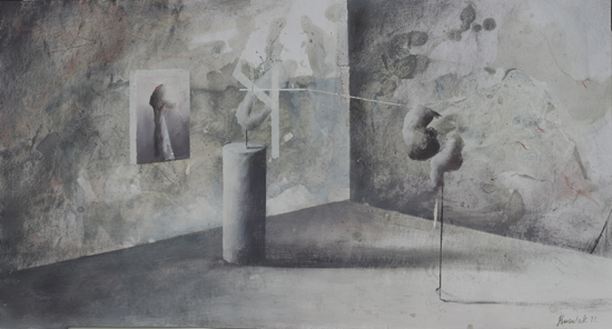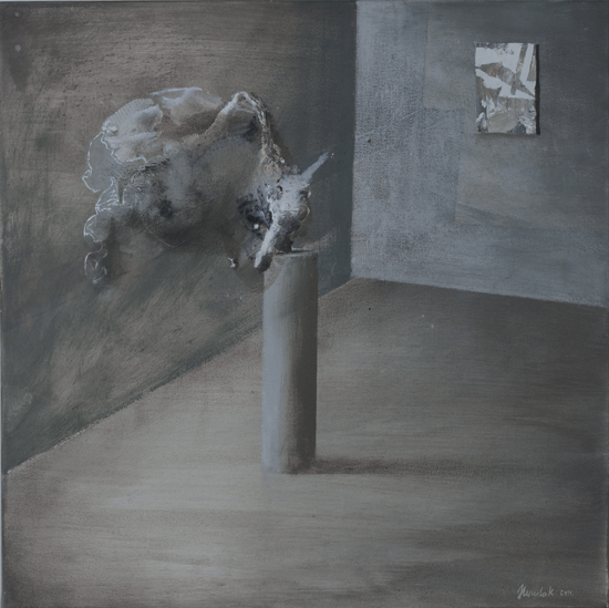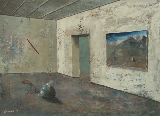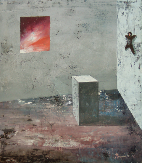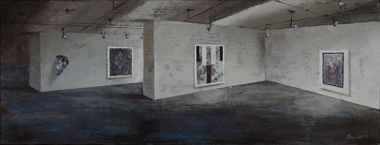 PIP jest ideą malowania nie tyle obrazu, co w obrazie. Nie jest to „obrazowe” teraz, ale przed lub po - rodzaj ekspozycyjnego projektu (propozycja aranżacji) lub powystawowej dokumentacji. Najbardziej znanym, najbliższym kompozycyjnie i koncepcyjnie przykładem takich realizacji są obrazy-katalogi opisujące kolekcje sztuki, jakie w XVIII wieku posyłali sobie nawzajem europejscy władcy. Inne możliwe skojarzenia to holenderscy perspektiveschilders i ich kościelne wnętrza, dotknięte abstrakcyjnym zmysłem protestanckiego ikonoklazmu. W obu przypadkach obrazy były bardziej „użytkowe” - stanowiły rodzaj dokumentacji lub rejestracji. Moje prace zachowują estetyczną autonomię. Obiekty, które maluję są fikcyjne, nie mogą niczego kopiować, gdyż z zasady powstają przypadkowo. Znaczna część pracy malarza polega moim zdaniem na uważnej obserwacji tego, co z farbą, a zatem strukturą całego przedstawienia dzieje się poza naszą kontrolą. Jakie efekty wizualne pędzel i farba generują samoistnie. Wychwytując je i wpisując w strukturę przedstawienia buduję obiekty „potencjalne”, bez wyraźnego autorstwa i proweniencji. Każdy jednak może zobaczyć w nich nieznane dzieło lub jakiś zarzucony projekt innego artysty. Mogą być również fragmentami natury nieożywionej - problem autorstwa jest poruszony na kilku poziomach.