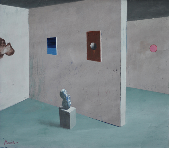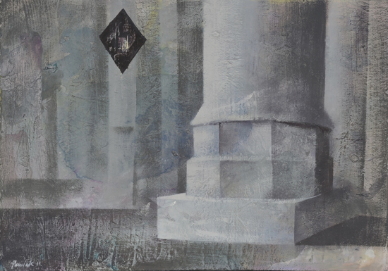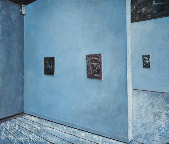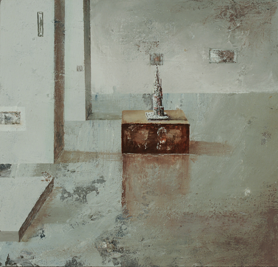 Bezpośrednią paralelę historyczną dla tych obrazów stanowią dzieła siedemnastowiecznych holenderskich „malarzy perspektywy”, wśród nich głównie Pietera Saenredama, którego niewielkie, wyciszone obrazy opustoszałych wnętrz kościelnych poruszają swoją ograniczoną gamą, nastrojem nieobecności i transcendencji. Większość tych obrazów padło ofiarą późniejszych ingerencji. Saenredam malował je głównie w celach dokumentacyjnych, ale późniejsi nabywcy zlecali często innym malarzom domalowanie postaci w celu uatrakcyjnienia warstwy narracyjnej. W trakcie konserwacji przemalowywania bywają najczęściej zdejmowane, a pozbawione anegdoty przedstawienia protestanckich świątyń odzyskują swój monumentalizm i niemal abstrakcyjny minimalizm. Nieobecność człowieka sprawia, że swoje znaczenie traci element akcji, uwypukleniu ulega natomiast kwestia przestrzennej rozciągłości, stosunków pomiędzy przedmiotami i miejscem, w którym są umieszczone. Uwagę oglądającego staram się skoncentrować na samej czynności patrzenia, wzrokowej kontemplacji, nie rozpraszając jego wysiłku na odczytanie i zdefiniowanie treści.