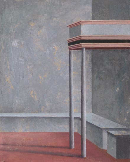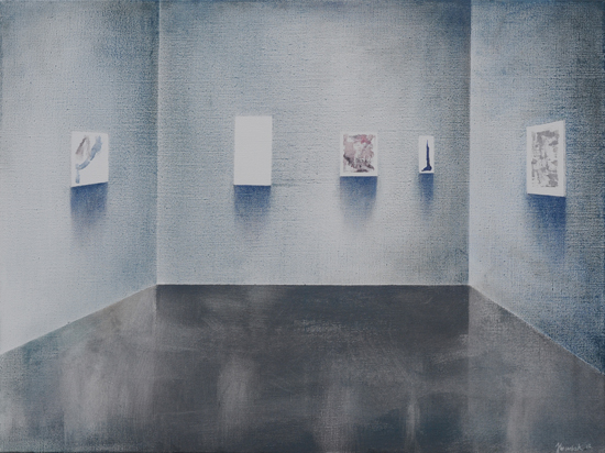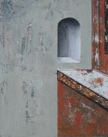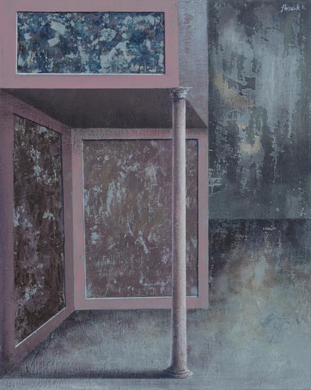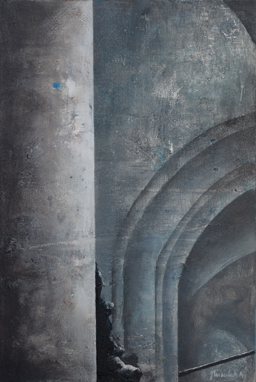Mistyczny potencjał architektury, kryjący się w abstrakcyjnym porządku prostych brył, rytmów i symetrii, uwidaczniają doskonale wąskie kadry - fragmenty. Te detale, pomimo ich fragmentaryczności, staram się uczynić autonomiczną całością. Architektura jest „mała” nie tylko dlatego, że przedstawia jedynie wycinki, ale również z powodu formatu - większość prac ma niewielkie rozmiary, co sprawia, że monumentalne pierwowzory stają się przestrzenią intymną, w której człowiek czuje się bezpiecznie odizolowany od natury nie tylko fizycznie, ale i mentalnie.